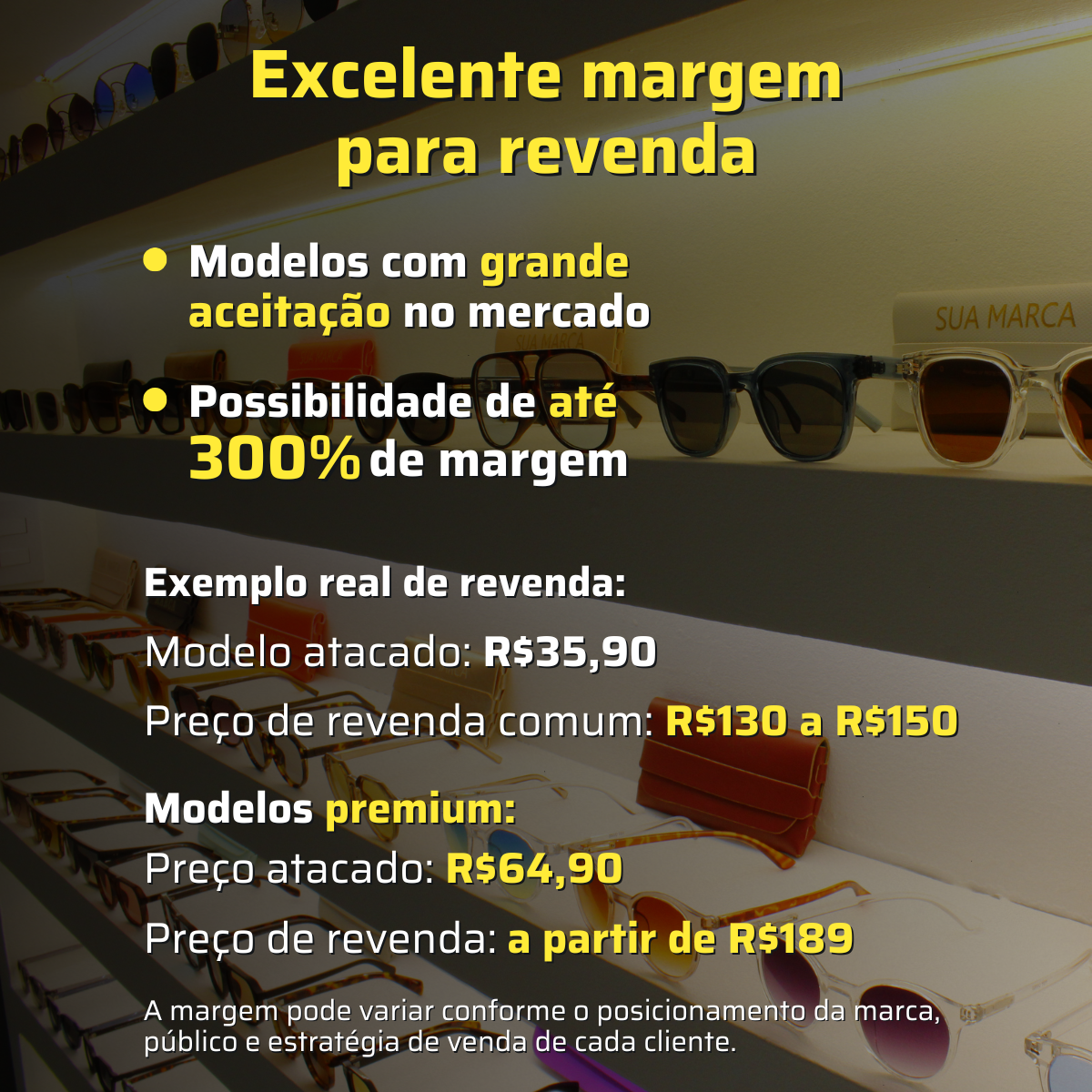 Os óculos Malibu possuem excelente aceitação no mercado, permitindo ótimas margens de revenda.
