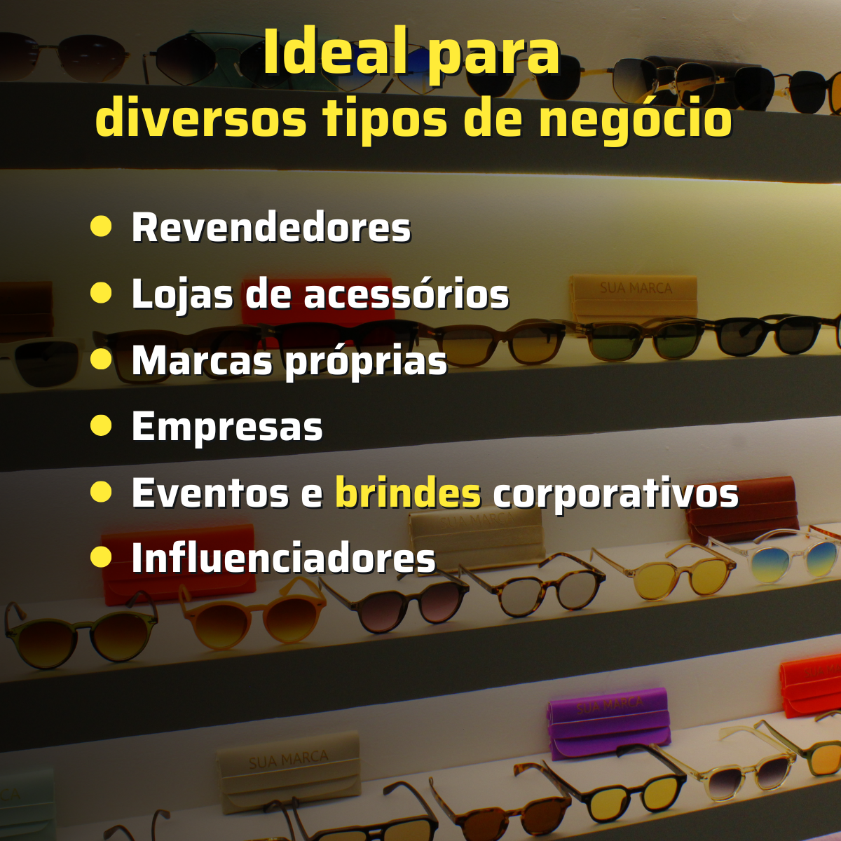 Revendedores, lojas de acessórios, marcas próprias, empresas, influenciadores e até eventos corporativos utilizam nossos óculos personalizados como produto principal ou como brinde exclusivo.