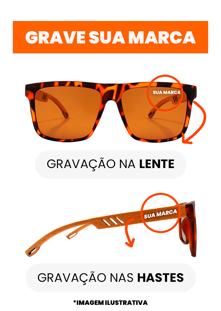 A armação é feita de Acetato e Madeira, e é protegida contra a corrosão.