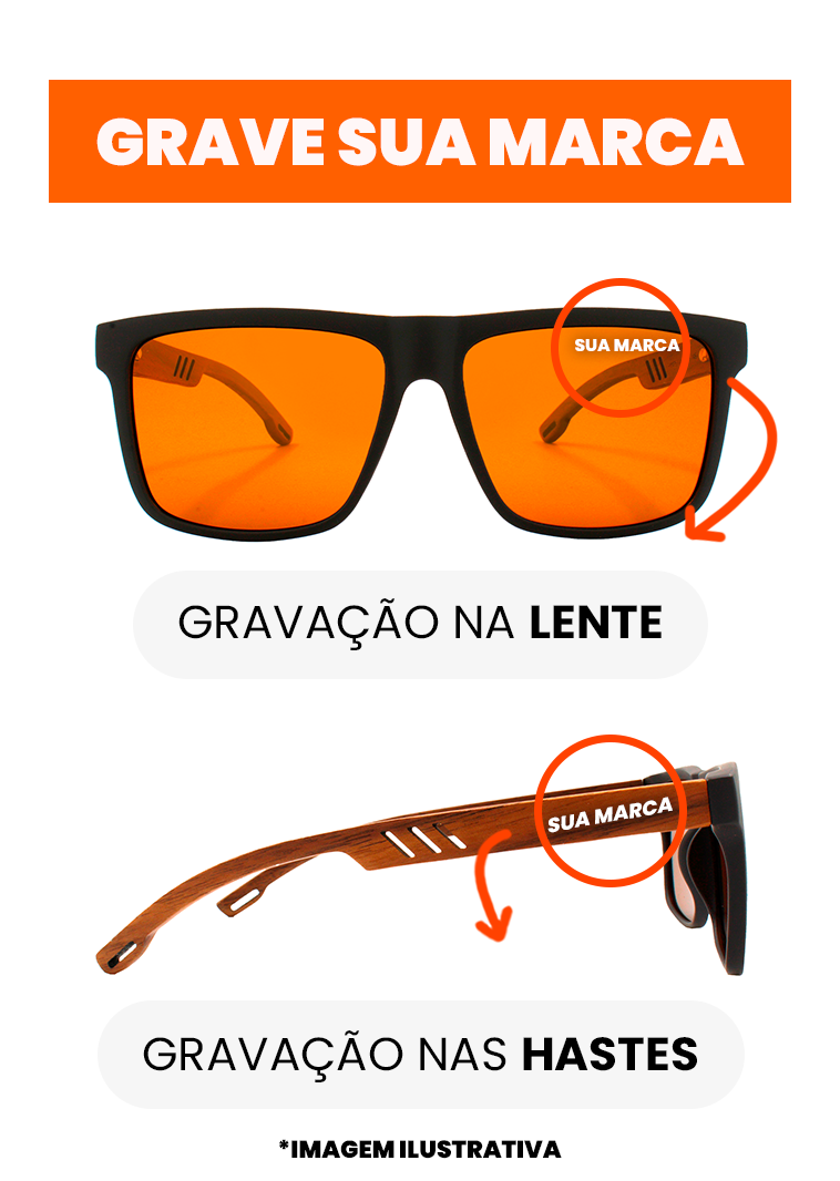A armação é feita de Acetato e Madeira, e é protegida contra a corrosão.