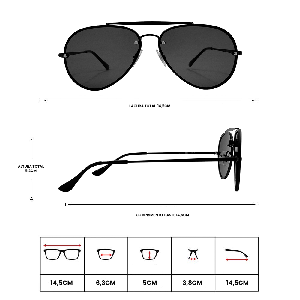 Óculos de Sol Aviador Fiore Preto (Unissex)