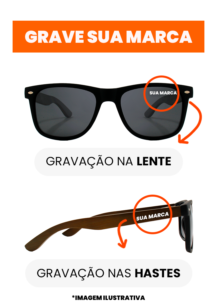 A armação é feita de Acetato e Madeira, e é protegida contra a corrosão.