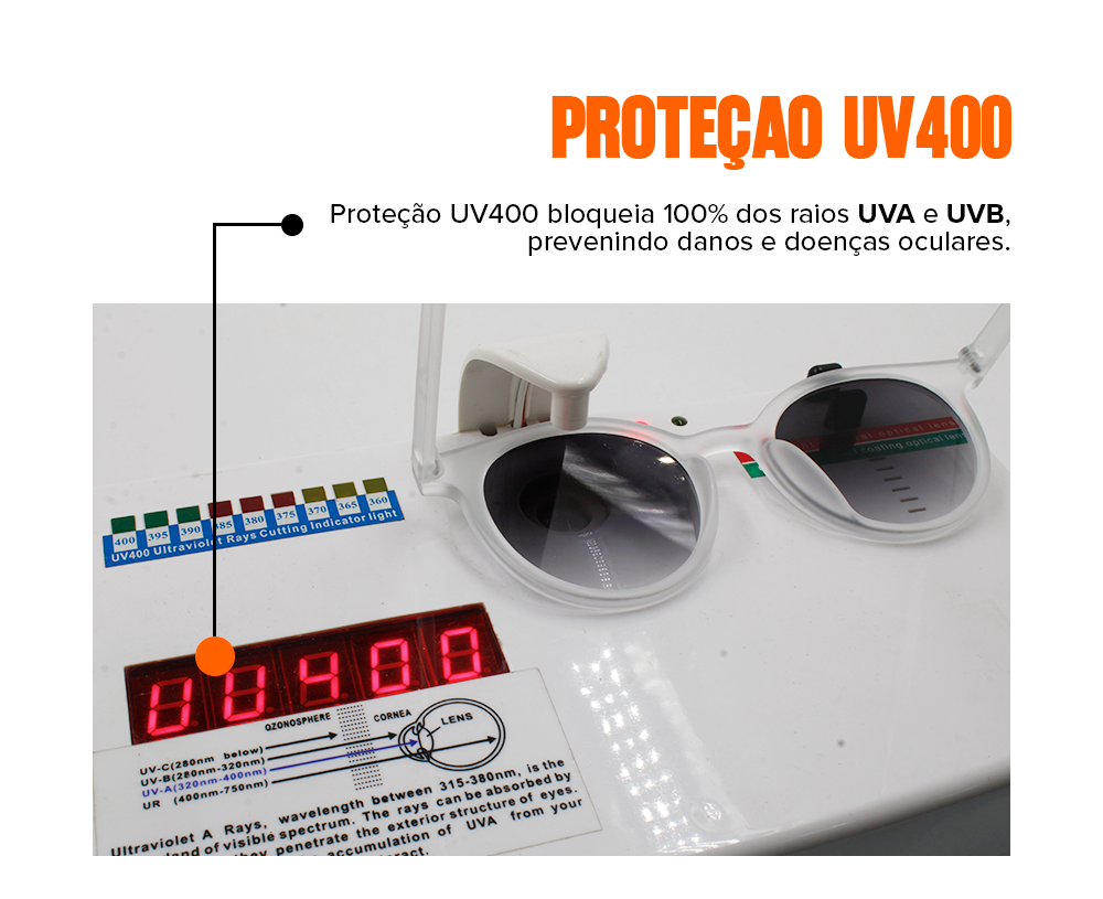 Nossos óculos são protegidos contra descascamentos provocados por suor e água.