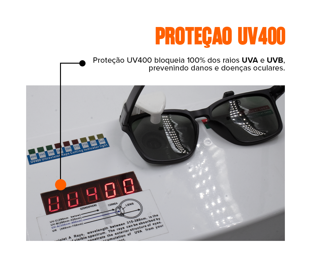 Nossos óculos são protegidos contra descascamentos provocados por suor e água.