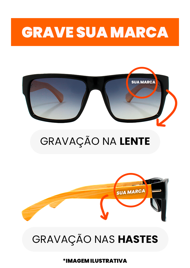 A armação é feita de Acetato e Madeira, e é protegida contra a corrosão.