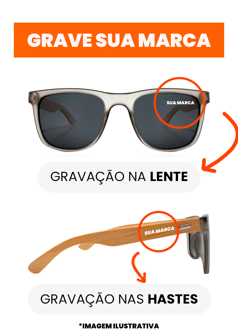 A armação é feita de Acetato, é protegida contra a corrosão. Hastes feitas em Bambu.