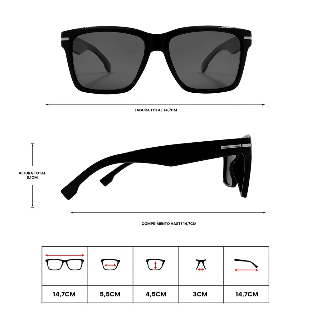 A armação é feita de Acetato, e é protegida contra a corrosão.