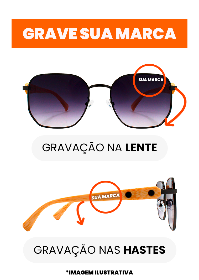A armação é feita de Acetato e Metal, e é protegida contra a corrosão.