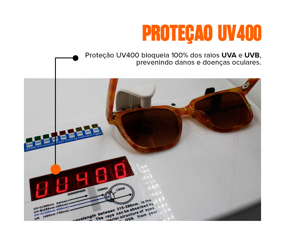 Nossos óculos são protegidos contra descascamentos provocados por suor e água.