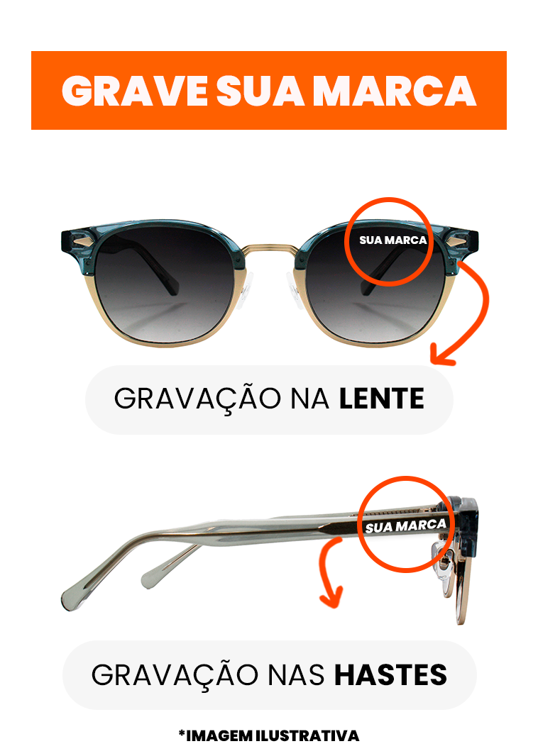 A armação é feita de Acetato e Metal, e é protegida contra a corrosão.