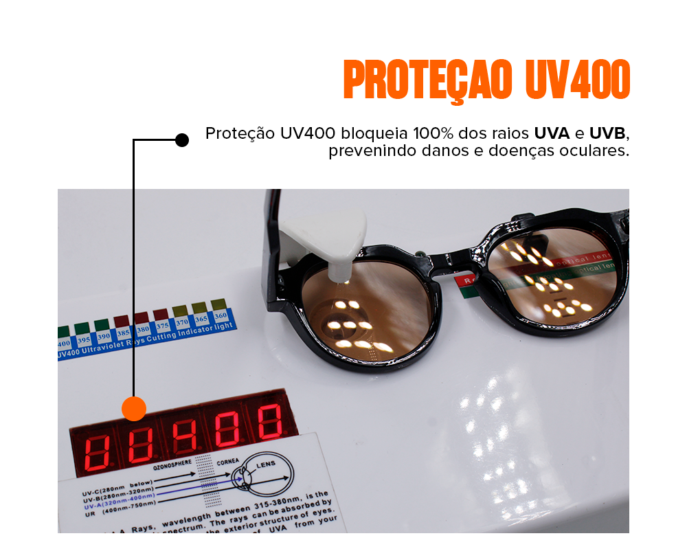 Nossos óculos são protegidos contra descascamentos provocados por suor e água.