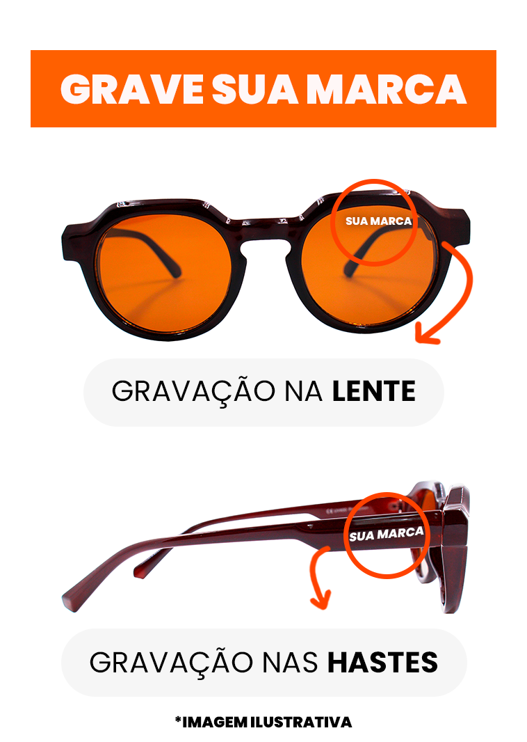 A armação é feita de Acetato, Material Injetado, e é protegida contra a corrosão.