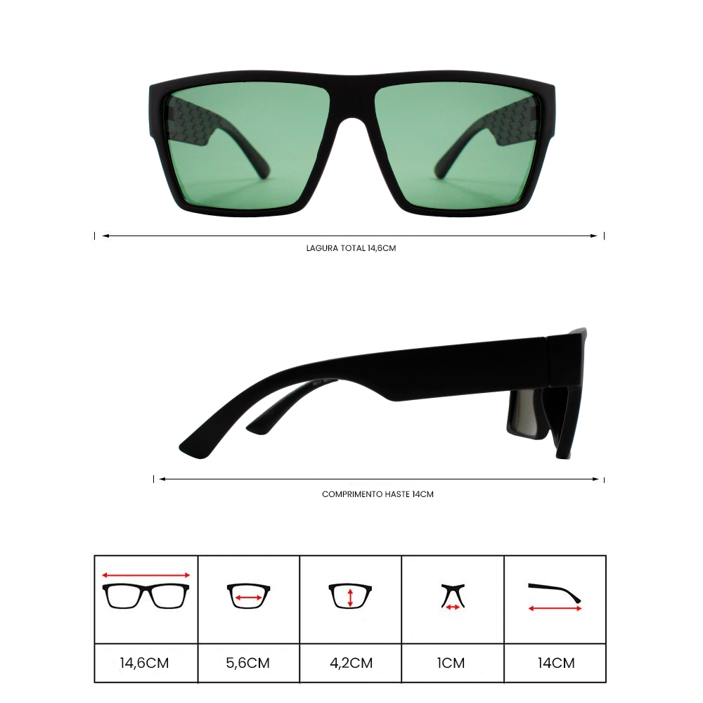A armação é feita de Acetato, e tem proteção contra corrosão.