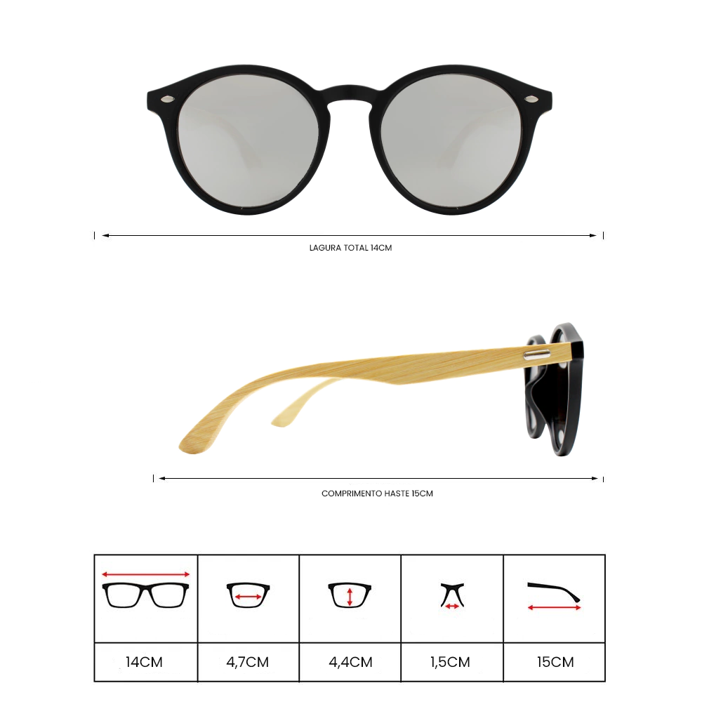 A armação é feita de Acetato, e tem proteção contra corrosão.