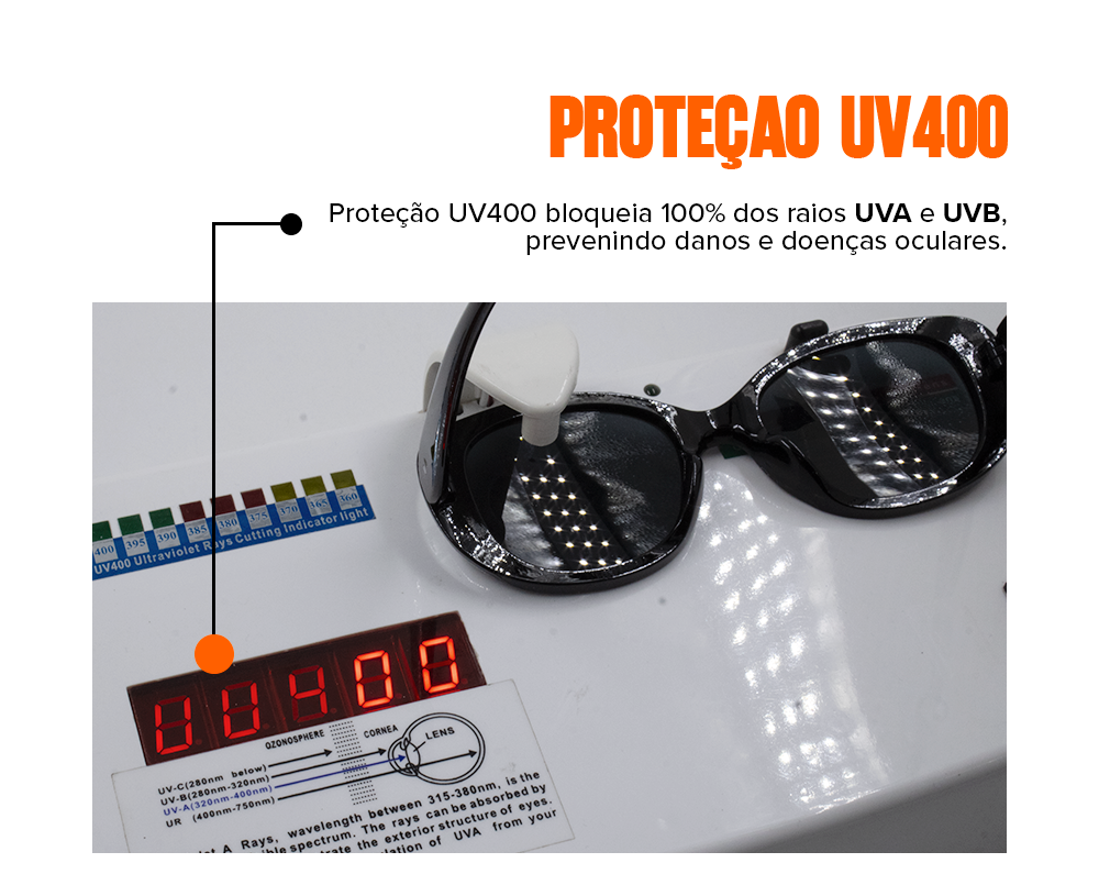 Nossos óculos são protegidos contra descascamentos provocados por suor e água.
