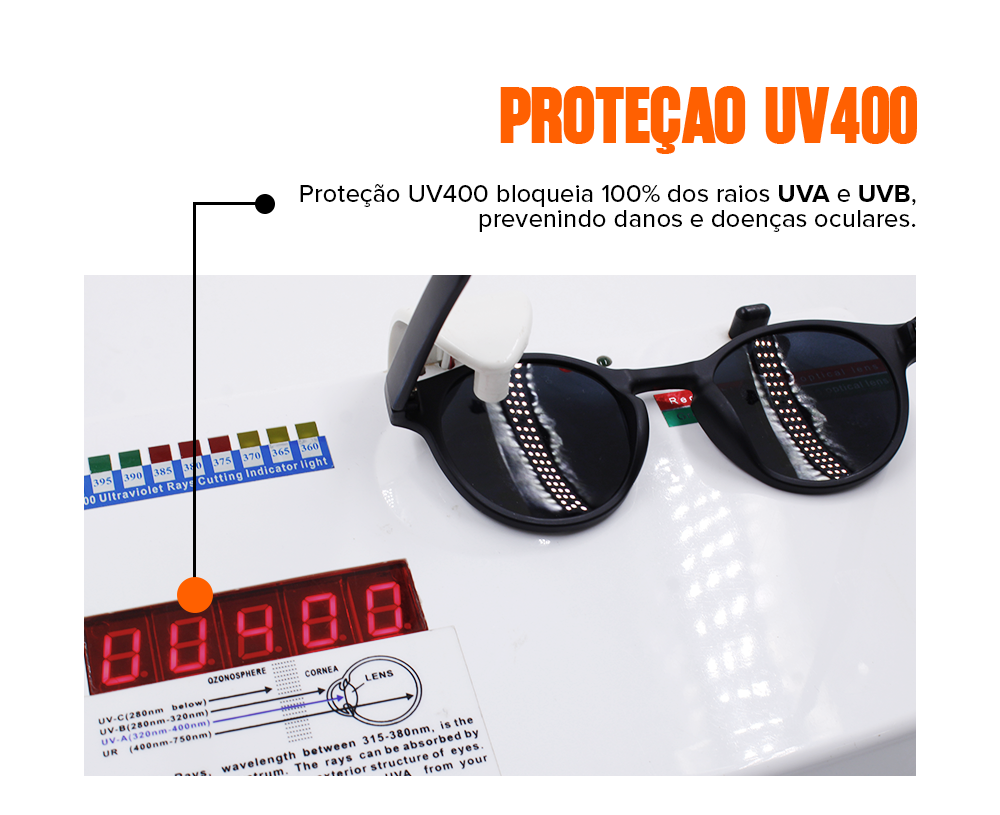 Nossos óculos são protegidos contra descascamentos provocados por suor e água.