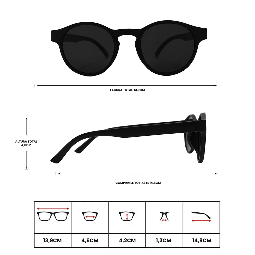 A armação é feita de Acetato, TR90 Importado, e é protegida contra a corrosão.