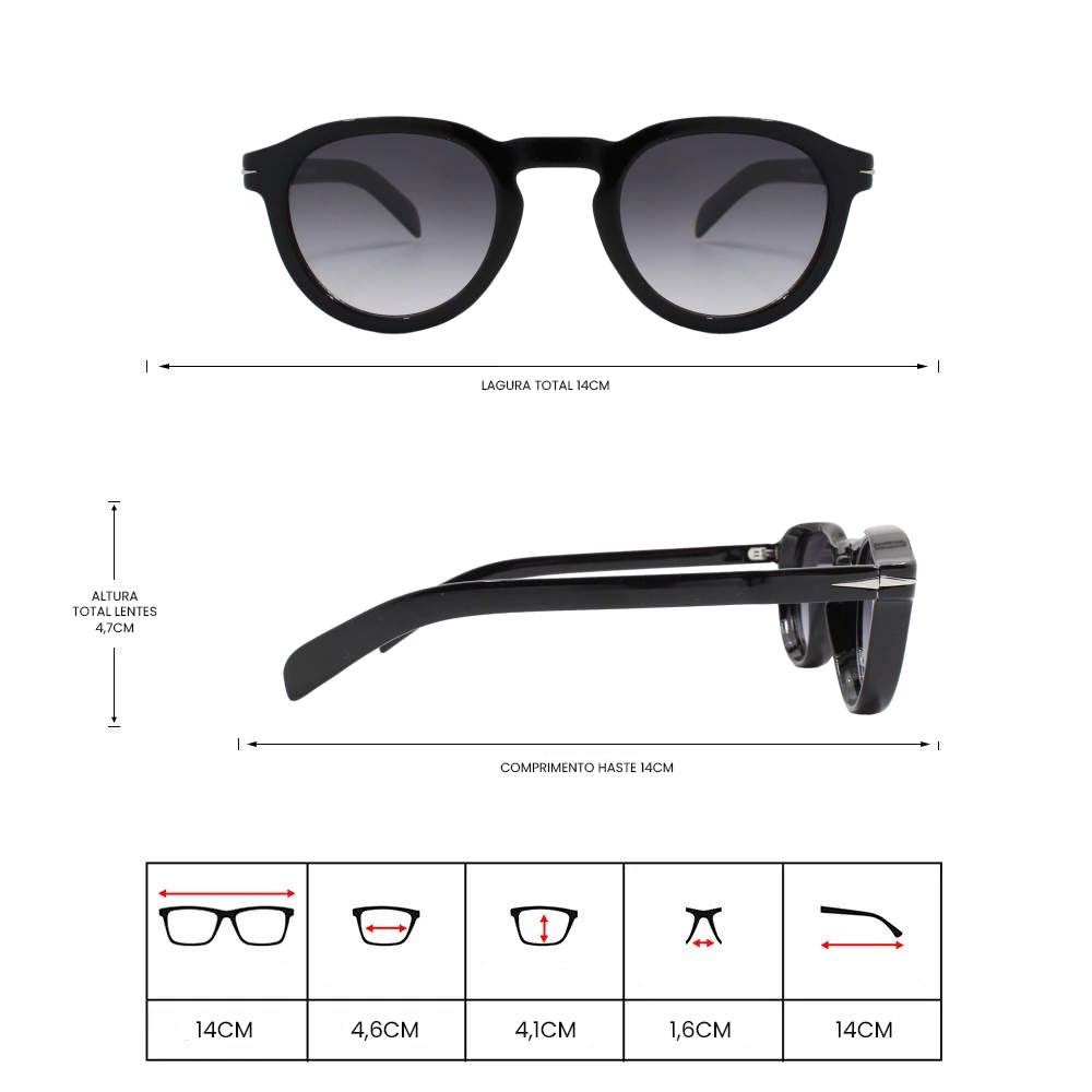 A armação é feita de Acetato, e é protegida contra a corrosão.