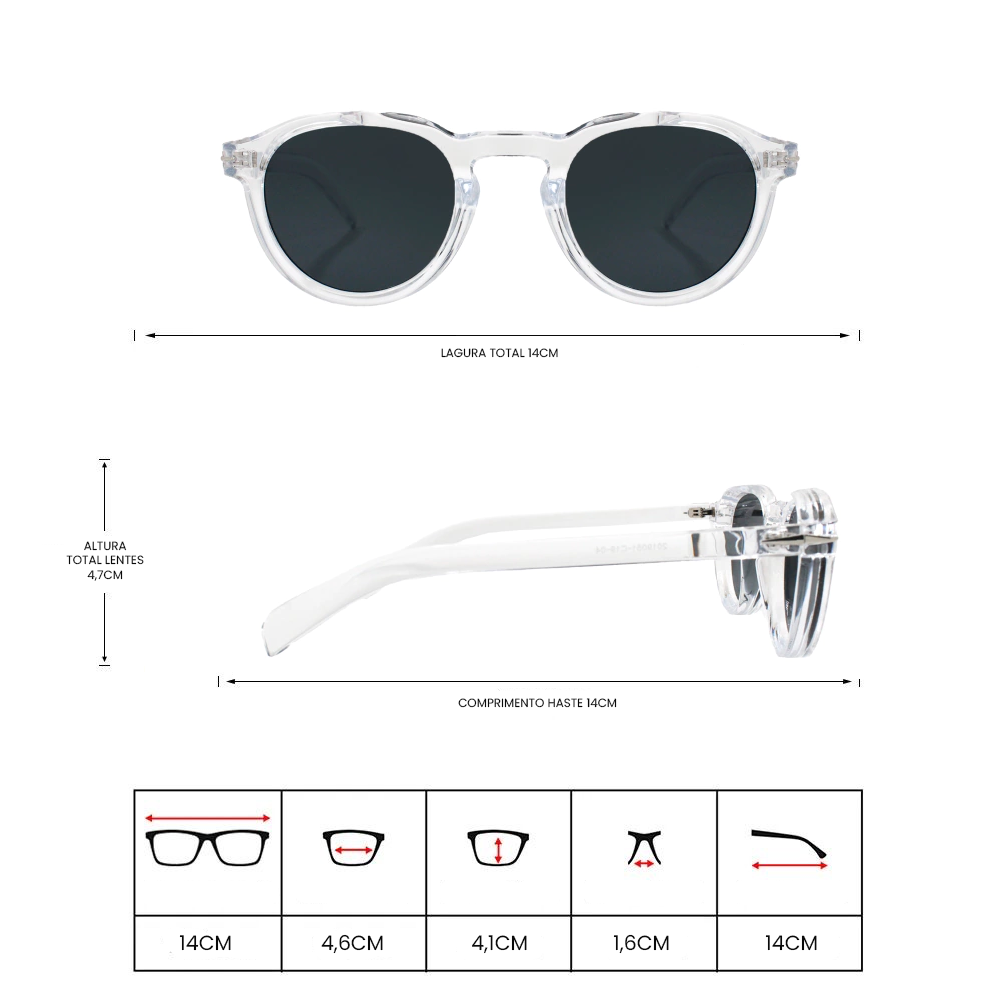 A armação é feita de Acetato, e é protegida contra a corrosão.