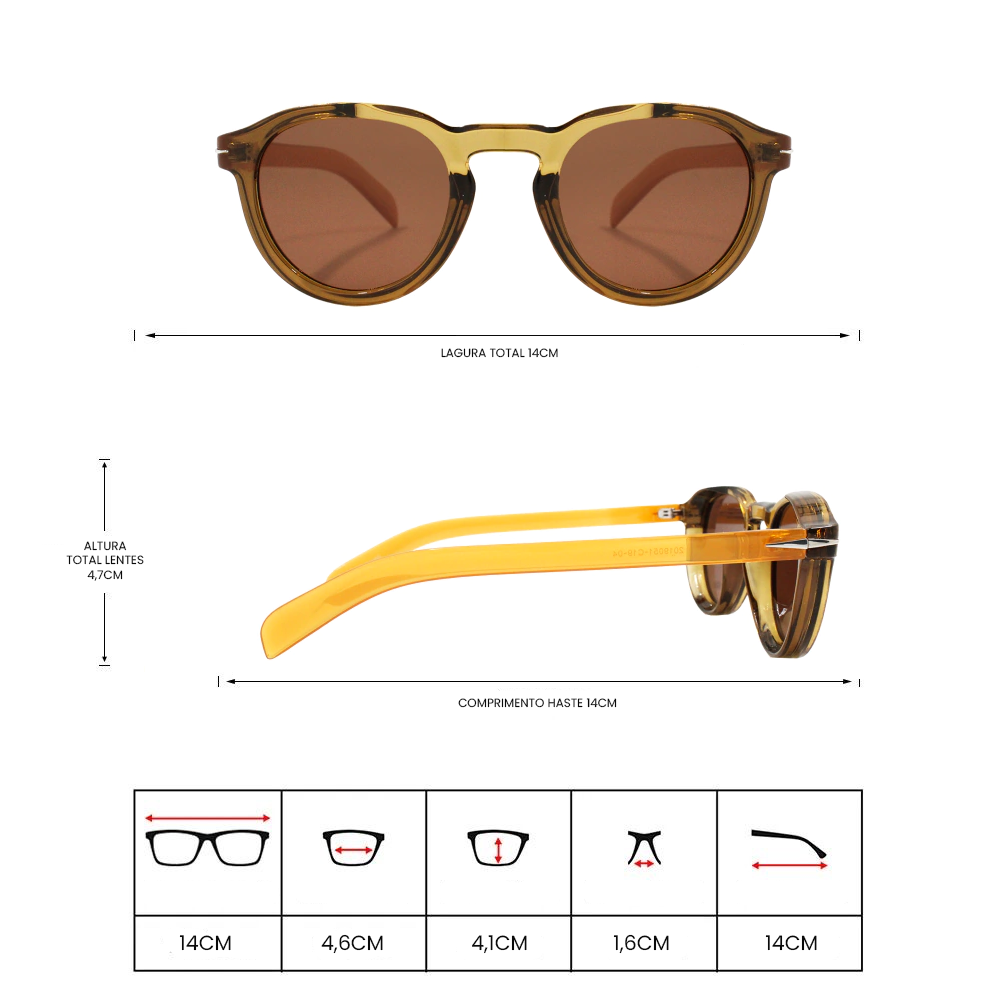 A armação é feita de Acetato, e é protegida contra a corrosão.