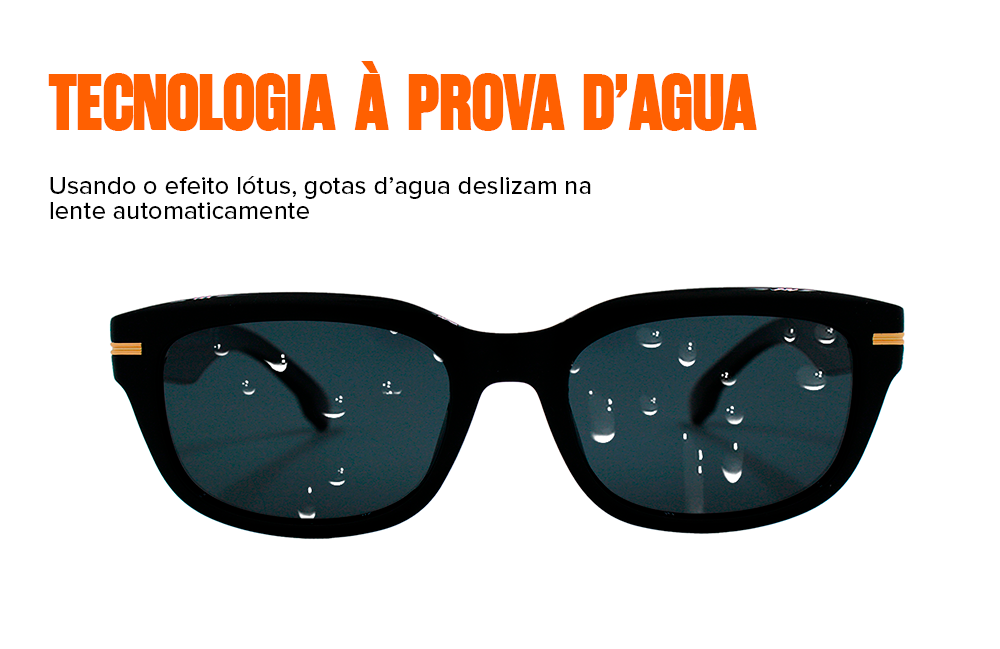 Nossos óculos são protegidos contra descascamentos provocados por suor e água.