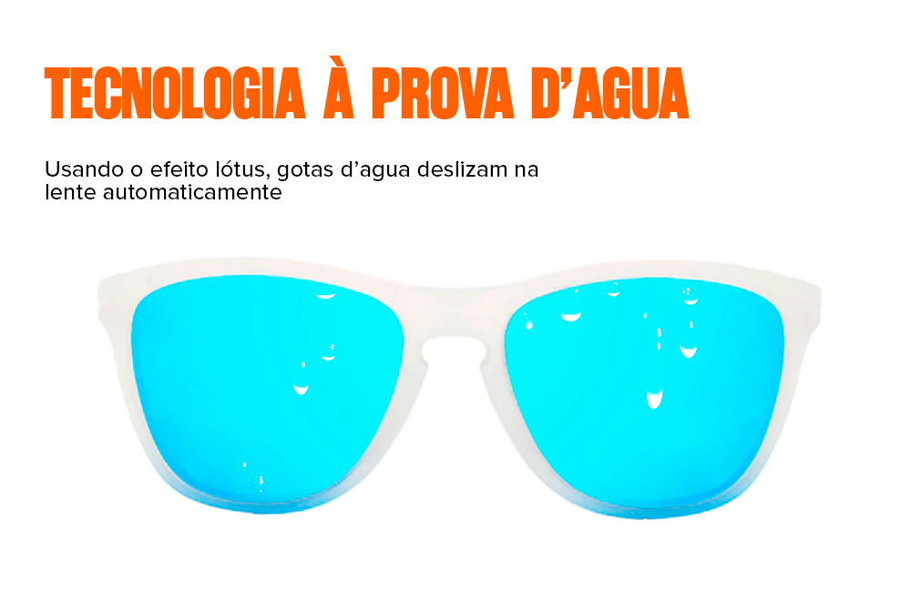 Nossos óculos são protegidos contra descascamentos provocados por suor e água.