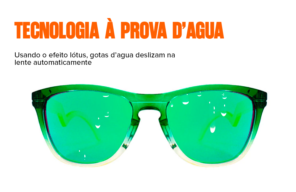 Nossos óculos são protegidos contra descascamentos provocados por suor e água.