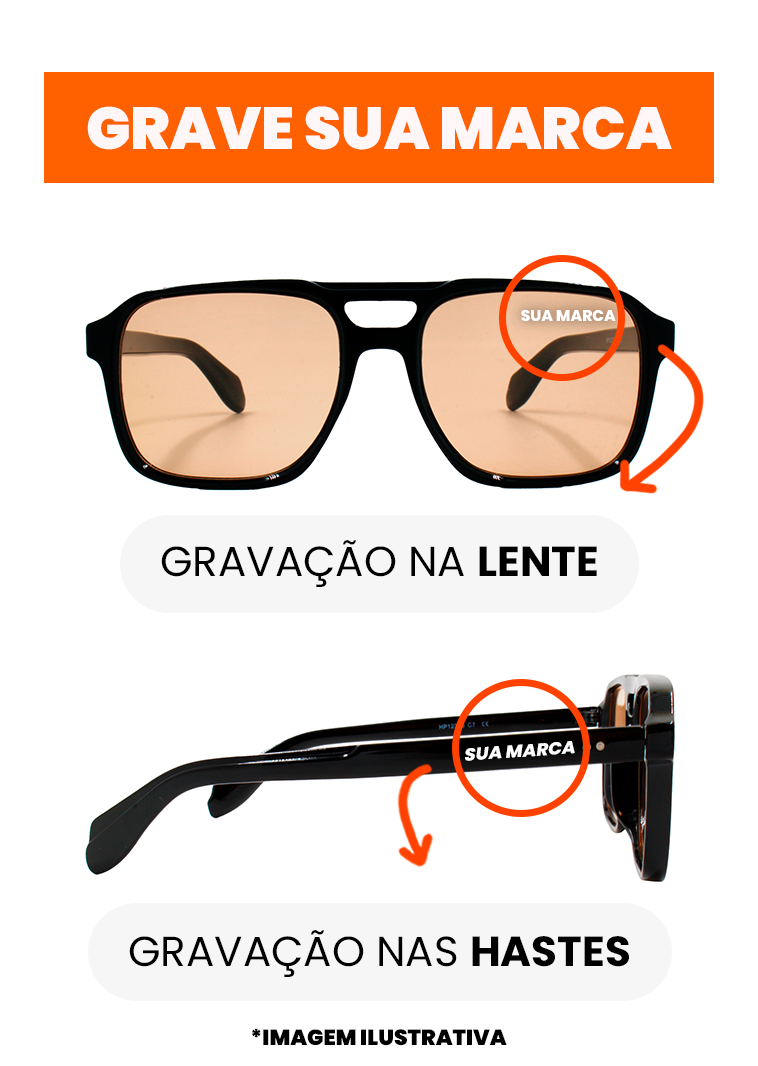 A armação é feita de Acetato, e é protegida contra a corrosão.