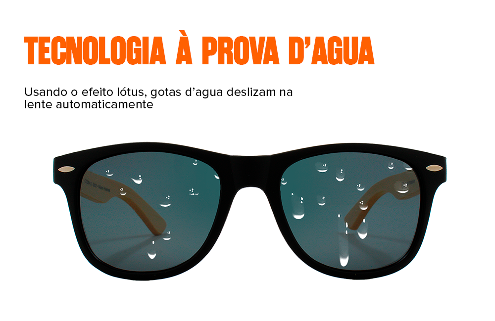 A armação é feita de Acetato e Bambu, e é protegida contra a corrosão.