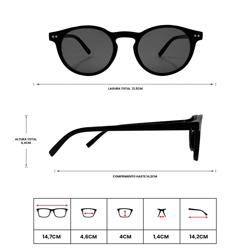 A armação é feita de Acetato, e é protegida contra a corrosão.