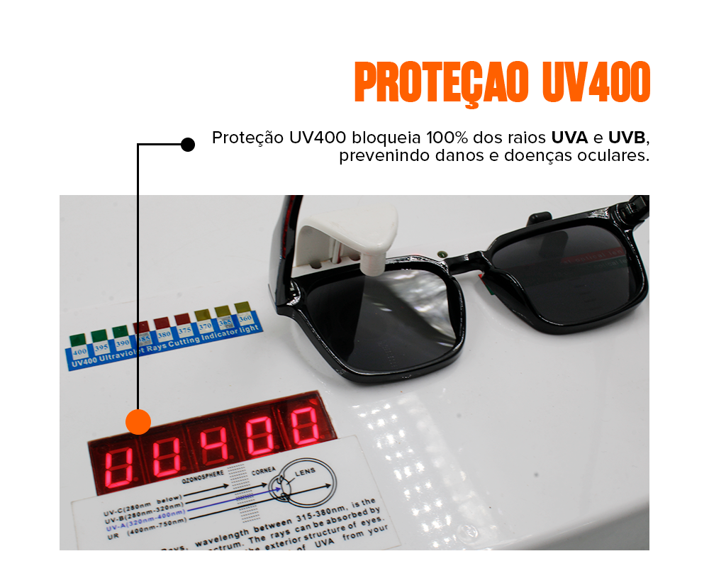 Nossos óculos são protegidos contra descascamentos provocados por suor e água.