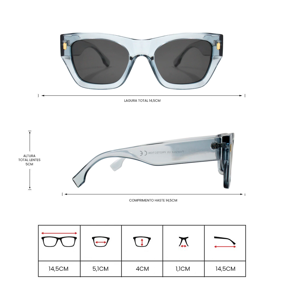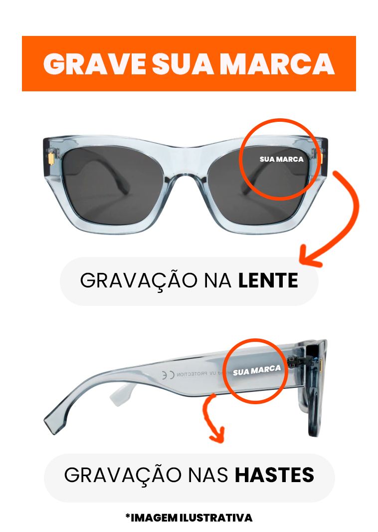 A armação é feita de Acetato, e é protegida contra a corrosão.