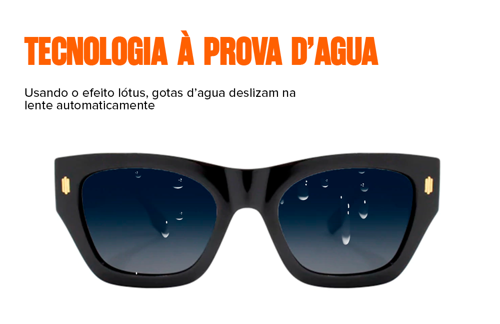 Nossos óculos são protegidos contra descascamentos provocados por suor e água.