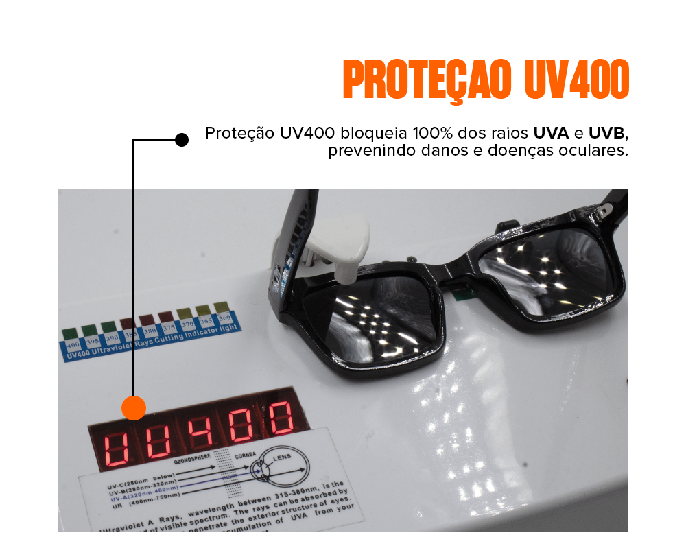Nossos óculos são protegidos contra descascamentos provocados por suor e água.