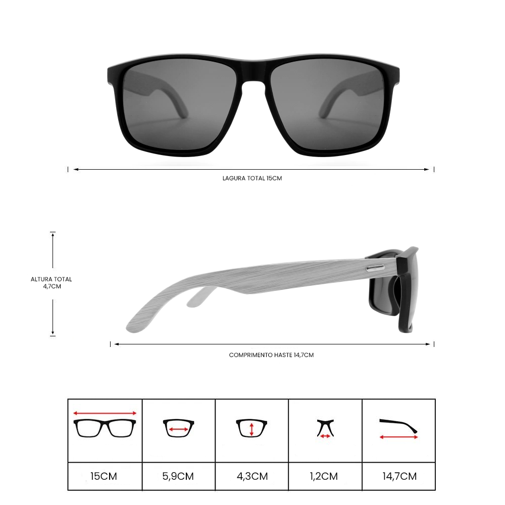 A armação é feita de Acetato, e é protegida contra a corrosão.