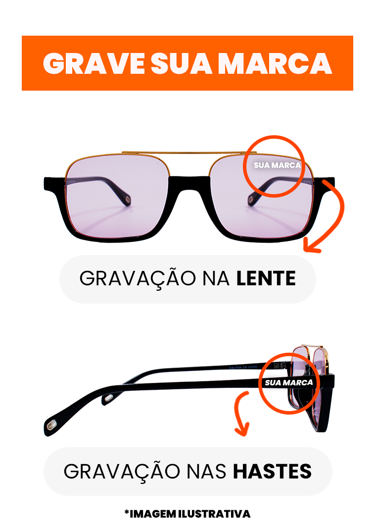A armação é feita de Acetato e Metal, Material Injetado, e é protegida contra a corrosão.