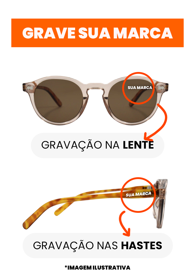 A armação é feita de Acetato, e é protegida contra a corrosão.