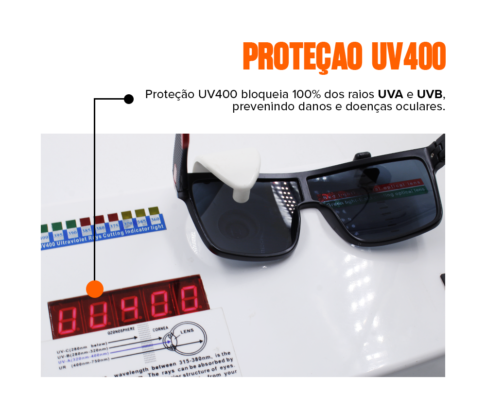 Nossos óculos são protegidos contra descascamentos provocados por suor e água.