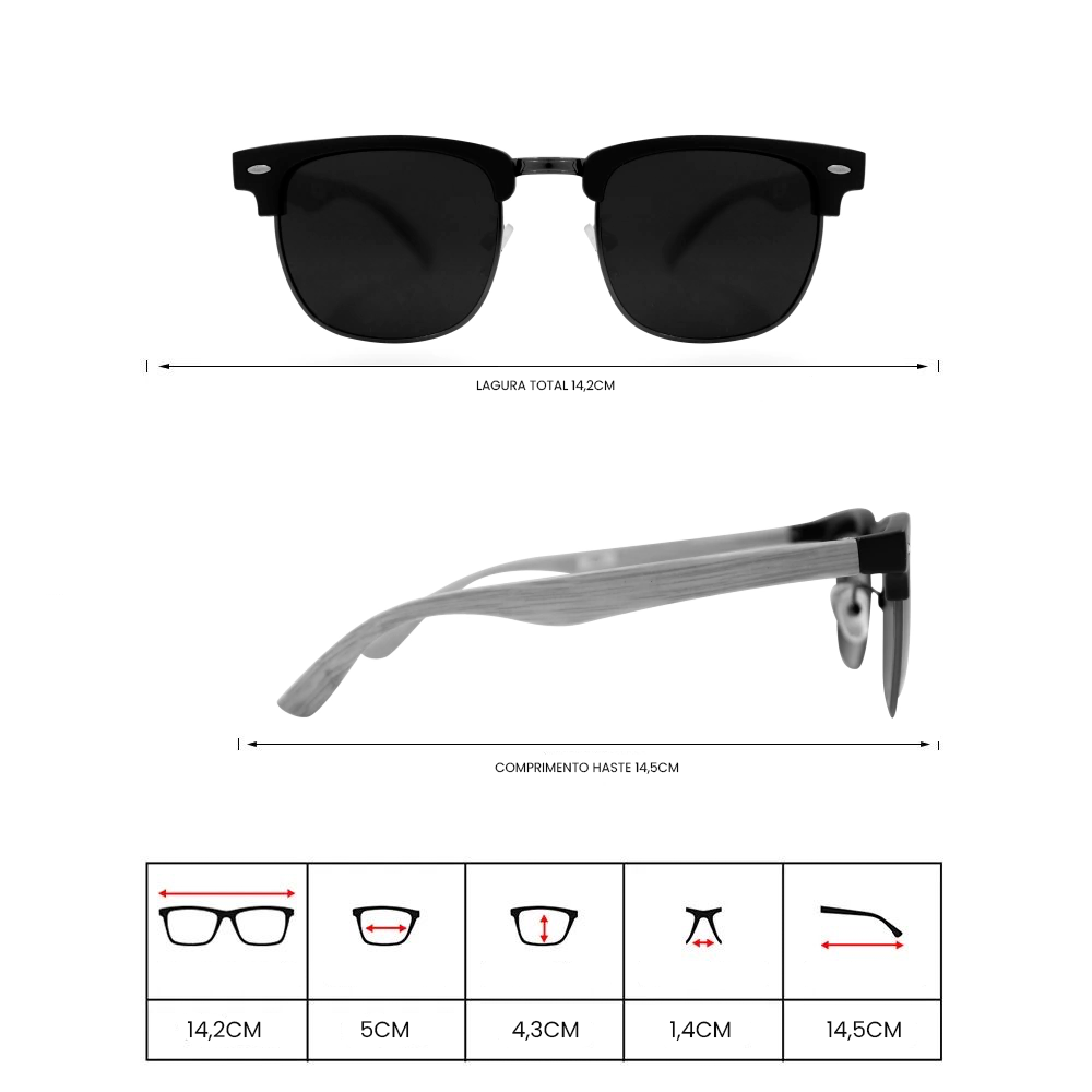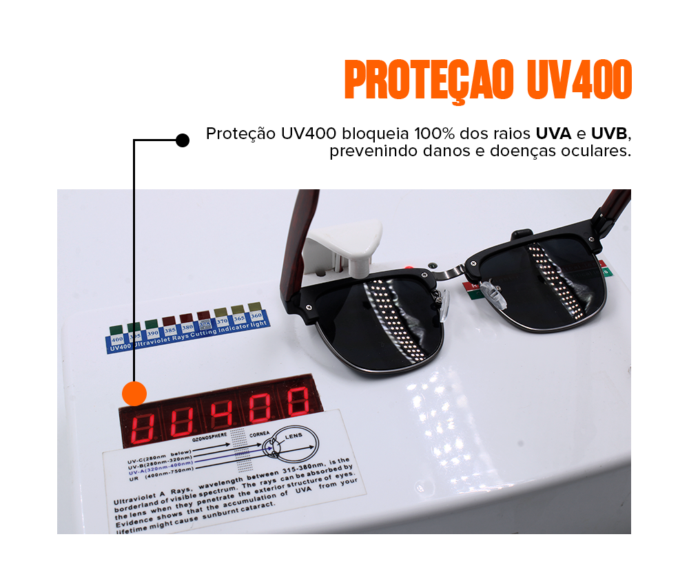 A armação é feita de Acetato, e é protegida contra a corrosão.