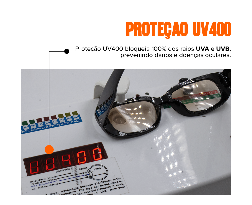 Nossos óculos são protegidos contra descascamentos provocados por suor e água.