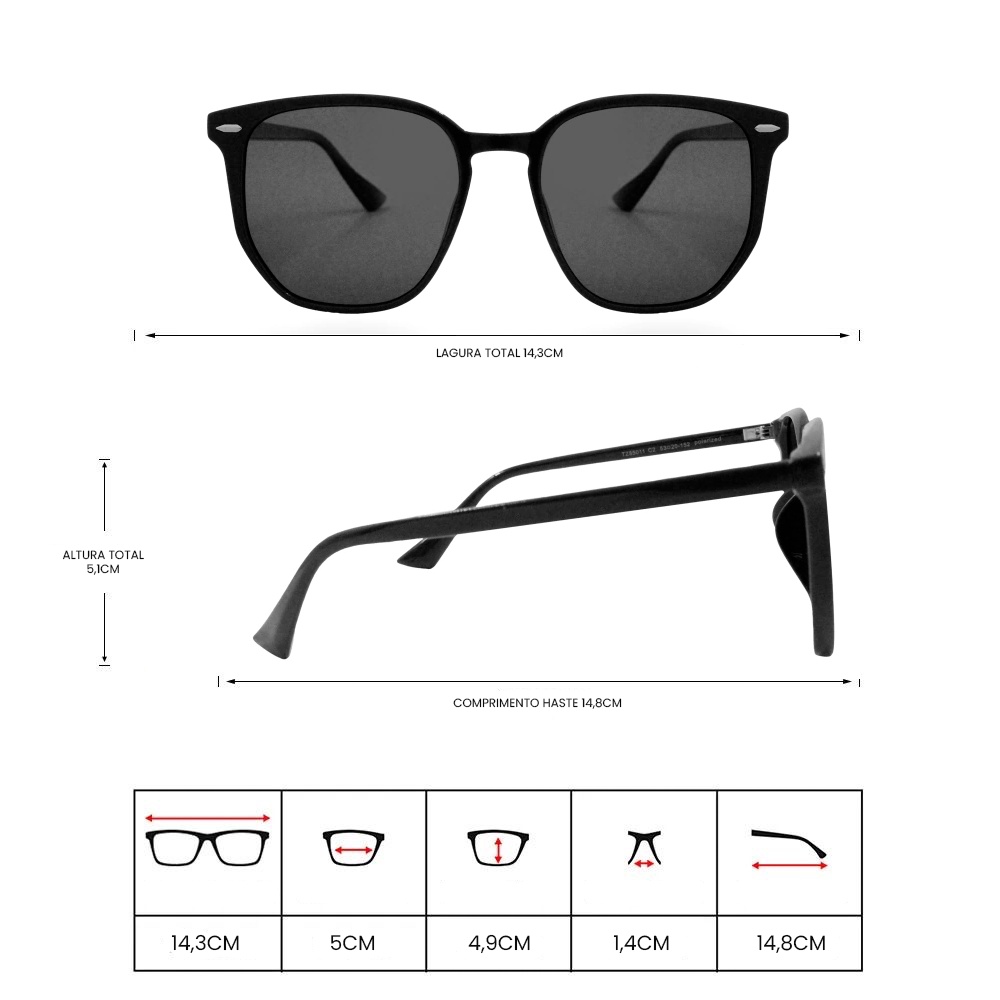 A armação é feita de Acetato, e é protegida contra a corrosão.
