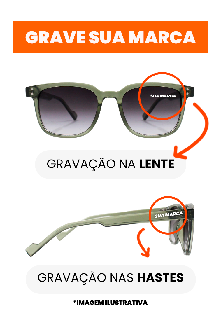 A armação é feita de Acetato, e é protegida contra a corrosão.