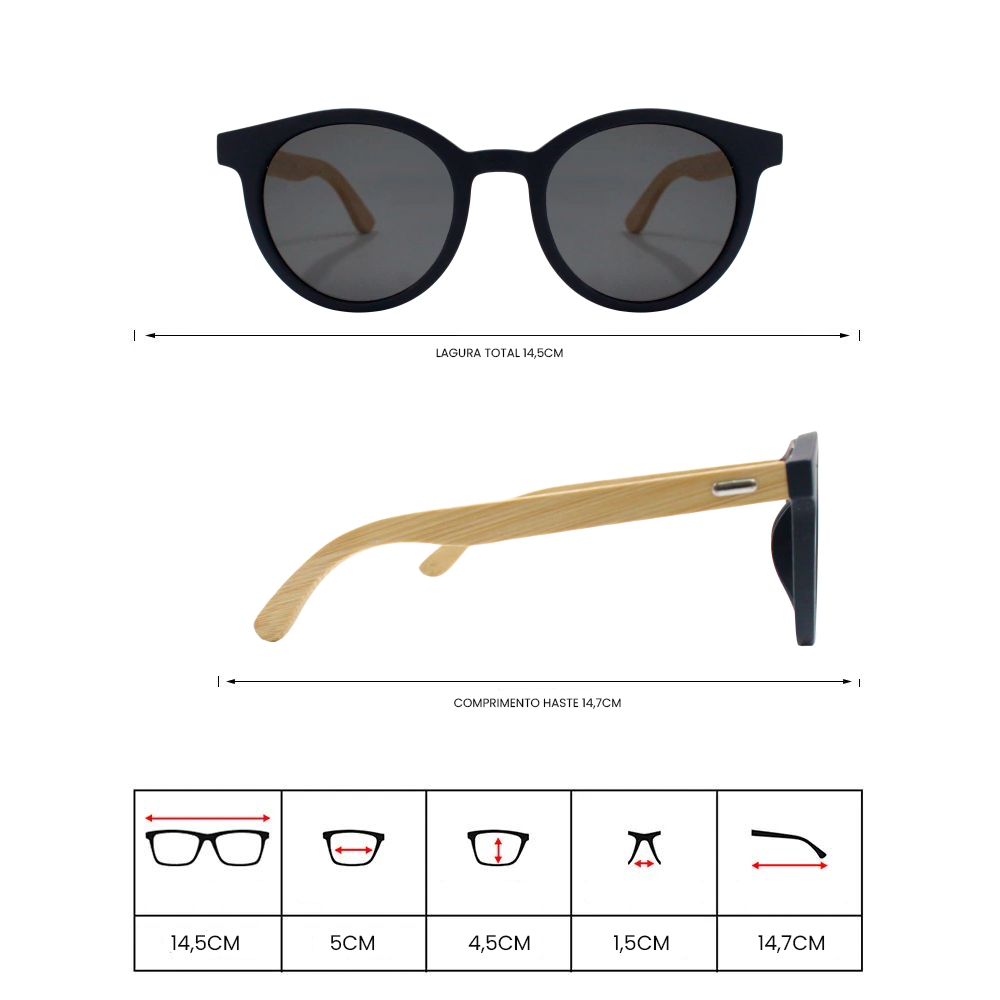 A armação é feita de Acetato, e é protegida contra a corrosão.
