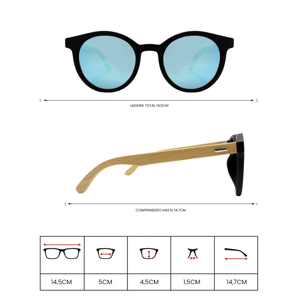 A armação é feita de Acetato, e é protegida contra a corrosão.
