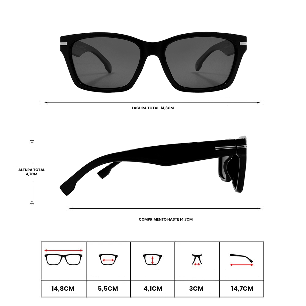 A armação é feita de Acetato, e é protegida contra a corrosão.