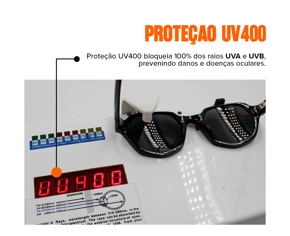 Nossos óculos são protegidos contra descascamentos provocados por suor e água.