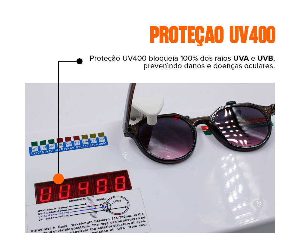 Nossos óculos são protegidos contra descascamentos provocados por suor e água.