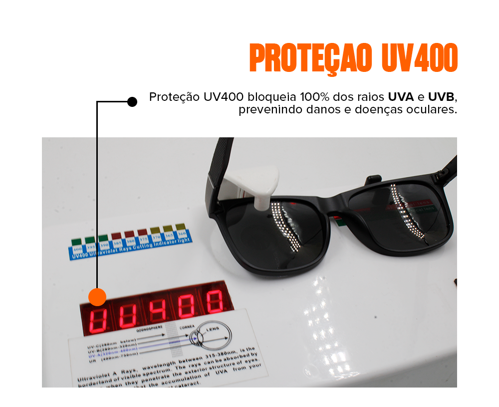 Nossos óculos são protegidos contra descascamentos provocados por suor e água.