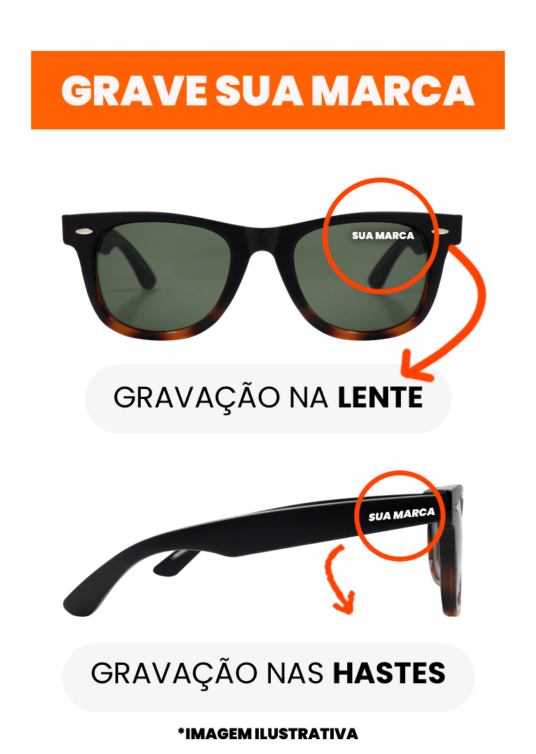 A armação é feita de Acetato, e é protegida contra a corrosão.