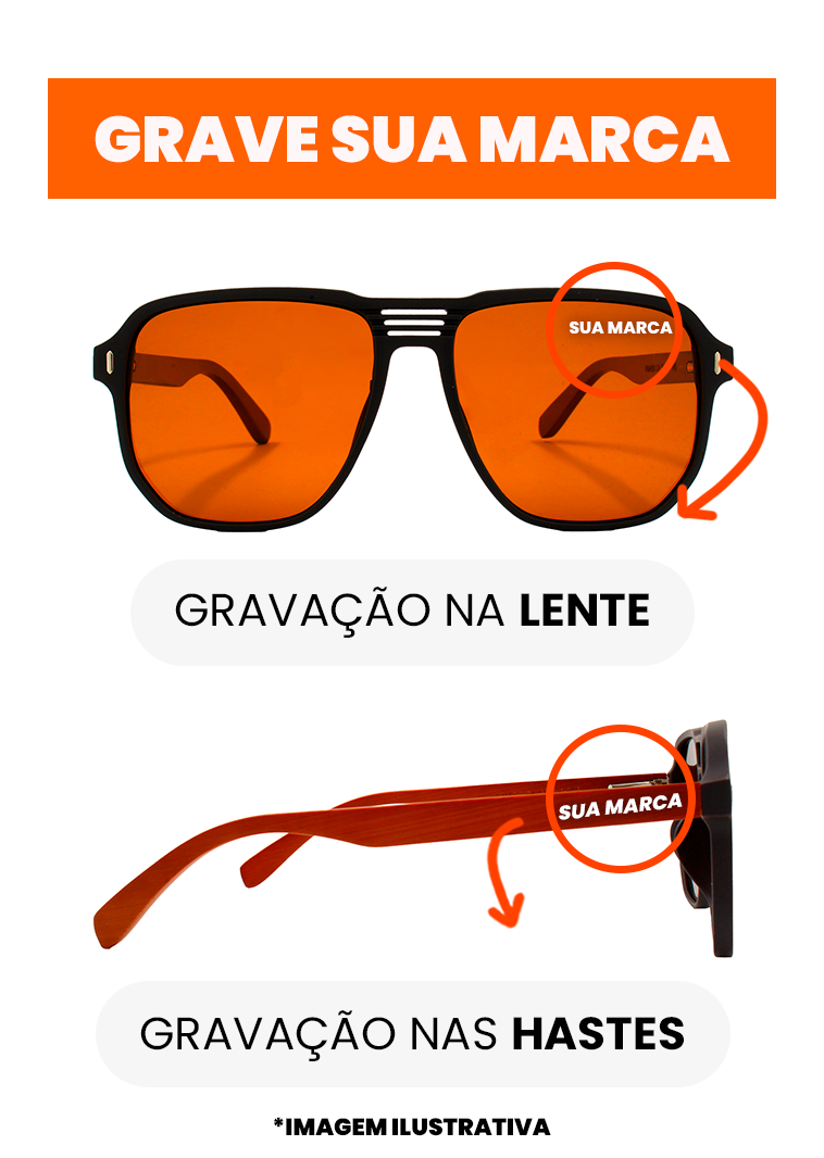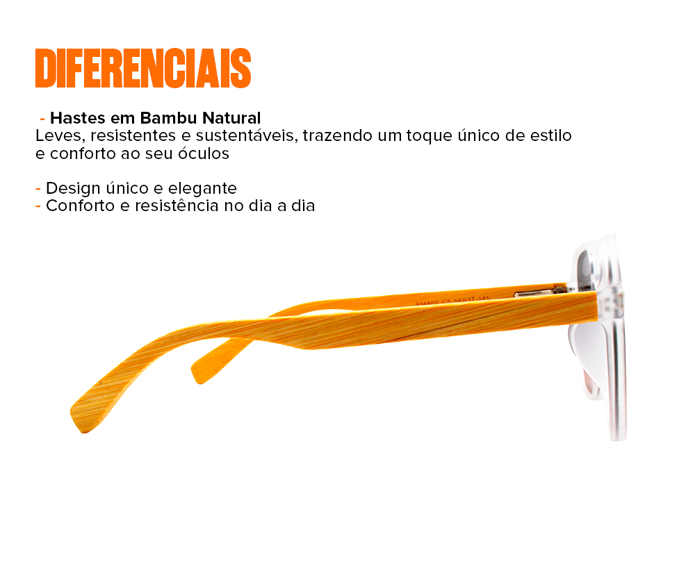 A armação é feita de Acetato e Madeira, e é protegida contra a corrosão.